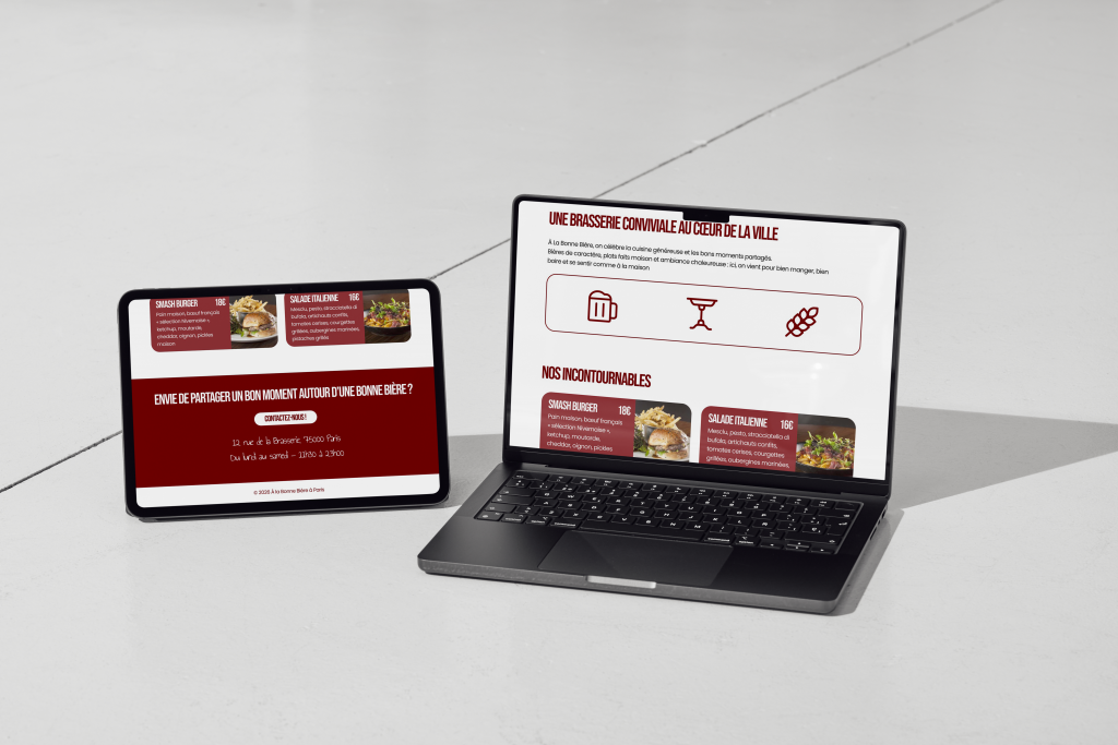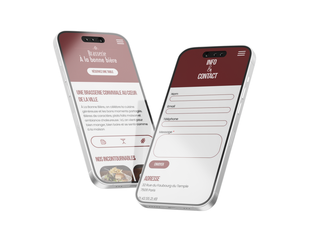 L’objectif était de créer une interface élégante et chaleureuse, capable de retranscrire l’ambiance authentique d’une brasserie parisienne tout en simplifiant le parcours client.